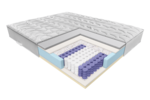 Z jednej strony wkładu znajduje się pianka wysokoelastyczna, która wspomaga elastyczność punktową sprężyny kieszeniowej. Jest surowcem bardzo wytrzymałym i niezwykle sprężystym. Dobrze dopasowuje się do kształtów ciała, jest odporna na ściskanie i niezwykle trwała, a po odciążeniu szybko wraca do swoich pierwotnych kształtów. Drugą stronę wypełnia delikatnie otulająca ciało pianka termoelastyczna, dokładnie dopasowująca się do jego konturów pod wpływem temperatury. Jej struktura sprawia, że ciało nie jest poddawane żadnym uciskom, w efekcie nic nie blokuje krążenia krwi. Pianka termoelastyczna jest też odporna na bakterie, pleśń, roztocza i inne chorobotwórcze mikroorganizmy, a więc jest doskonałą opcją dla alergików. W zależności od potrzeb, możesz zmieniać podparcie, wybierając te bardziej sprężyste bądź otulające.